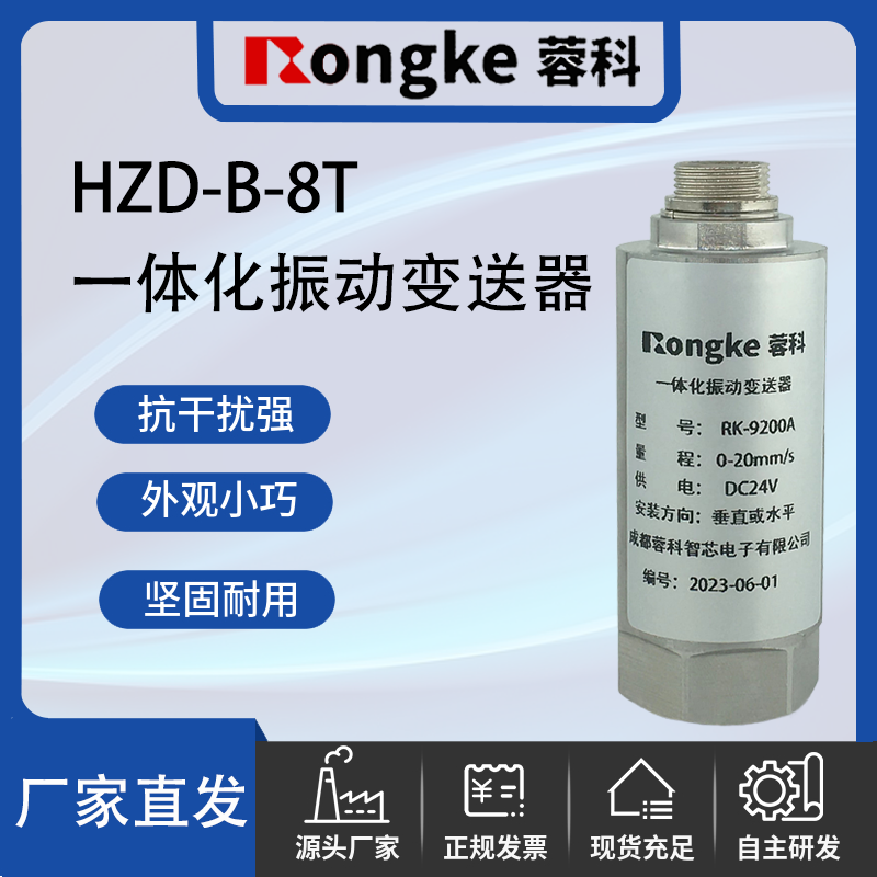 一体化振动变送器:将磁电式振动传感器、精密测量电路集成在一起,构成高精度振动测量系统,该变送器可直接连接DCS、PLC或其它设备,是测量风机、电动机、水泵等工厂设备振动的理想选择。